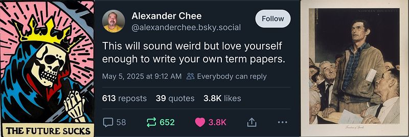 While virtually all technological innovations have at least niche uses, I am chiefly concerned with how the aggressive (yes) marketing of GenAI applications puts students at risk of de-skilling, creative languishing, and counterproductive forms of cognitive offloading. I am actively exploring ways that we as instructors can address these issues, especially given the added complication that academic pressures and alienation from our work (for instructors and students alike) only increase the temptation to have the machines do our writing for us.